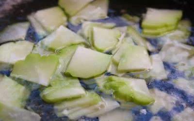 3. 焯水:将腌制好的佛手瓜片放入沸水中焯水,焯水时间不宜过长,大约1分钟左右即可。焯水可以去除佛手瓜的苦涩味,同时保持其脆嫩口感。