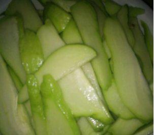 1. 清洗佛手瓜:将佛手瓜洗净,去掉蒂部和瓜瓤,切成薄片。